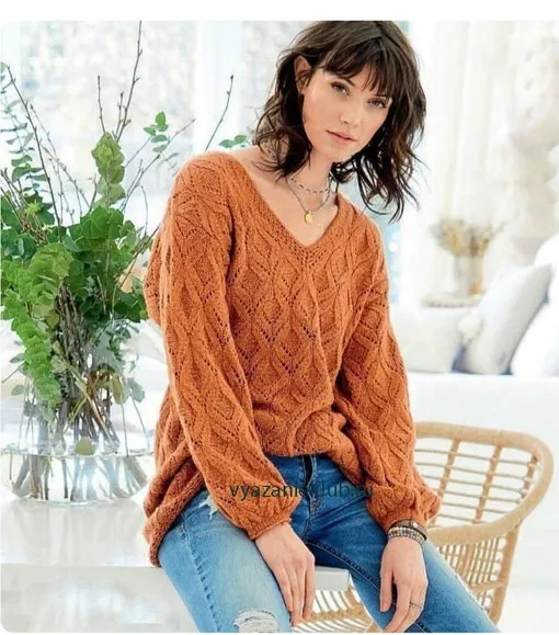 Описание вязания ажурного женского пуловера спицами