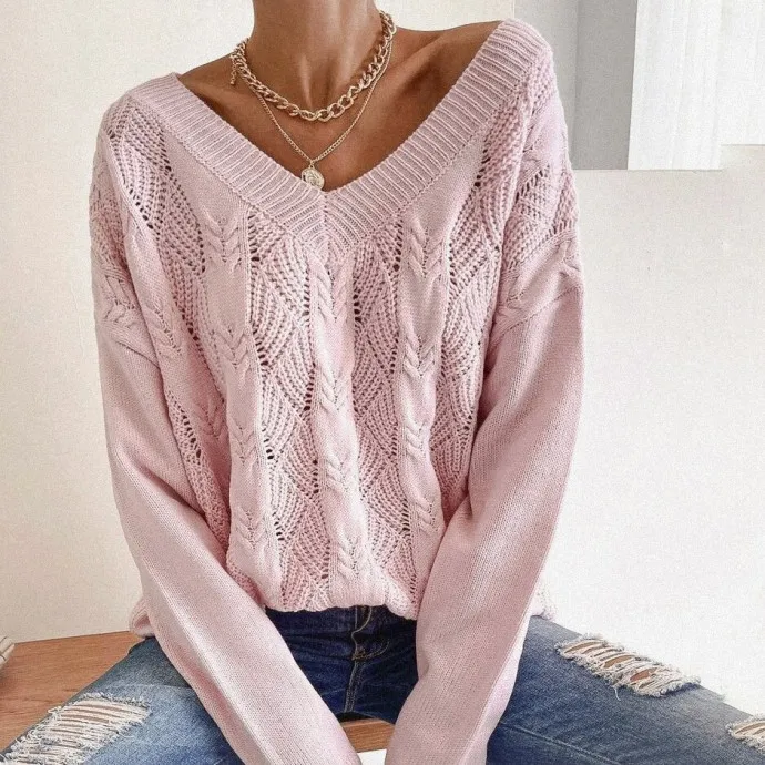 Пуловер выполненный комбинацией жгутов и патентной резинки, а точнее интересного ажурного узора на её основе, — лавандово-розовый пуловер свободной посадки.