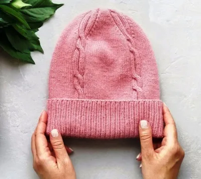 Розовая шапка спицами
