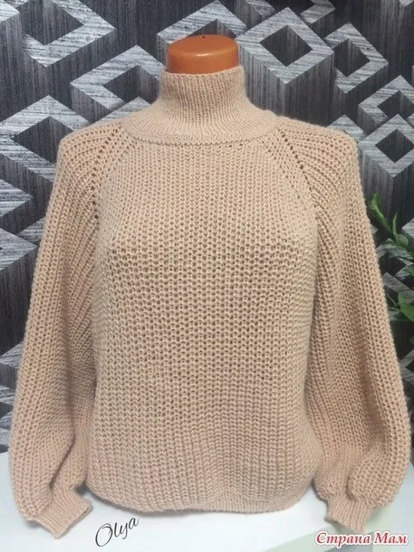 Свитер женский спицами. Реглан сверху