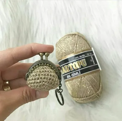 В Сети наткнулась на такой маленький кошелечек, с фермуаром. Он просто крошка. Не знаю, какое ему применение, кроме как показать в Интернете. Но захотелось поинтересоваться, какого размера изделия Вы предпочитаете вязать? Какое изделие из всех Вами связанных было самое маленькое?