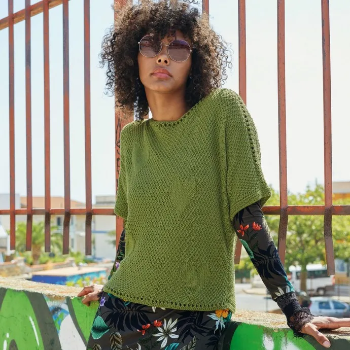 Пряжа (100% хлопка; 130 м/50 г) — 350 (400) 450 г зеленой; круговые спицы №4,5.