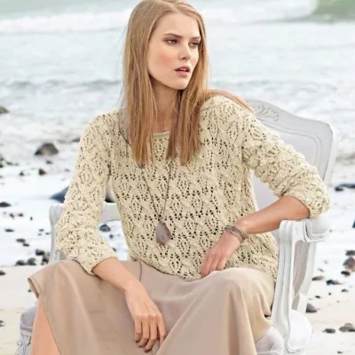 Восхитительный ажурный узор этого джемпера очаровывает. Исключительно нежная модель для настоящих ценительниц прекрасного.