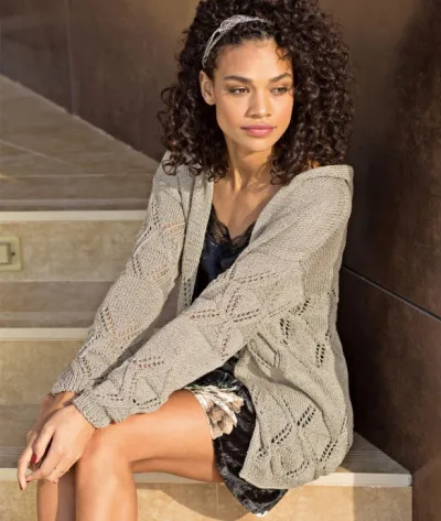 Пряжа (60% хлопка, 40% полиамида; 115 м/50 г) — 600 (700) г серой; спицы №4 и 4,5; круговые спицы №4,5.
