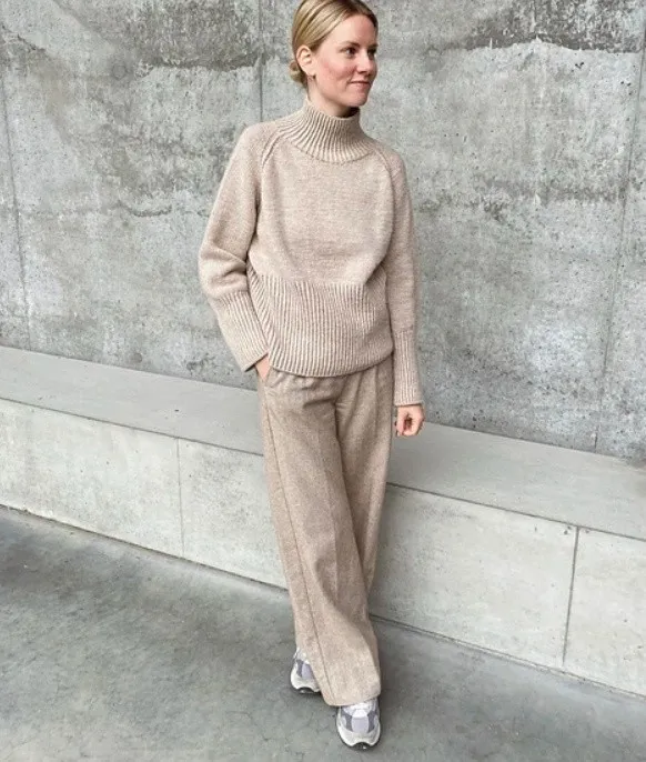 Базовый свитер свободного покроя дополнен высокими манжетами и нижней планкой тела. Объемная пряжа подчеркивает рельефность резинки, которая гармонично сочетается с гладким полотном.