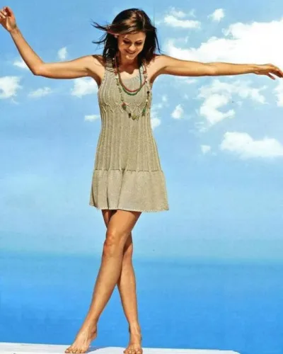 Вам потребуется: 400/400/450/500 г бежевой пряжи Cotton Fifty (50% хлопка, 50% акрила, 140 м/50 г); спицы № 2,5 и № 3.