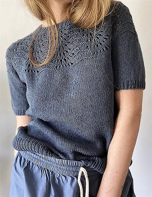 Футболка на ажурной кокетке, вяжем спицами