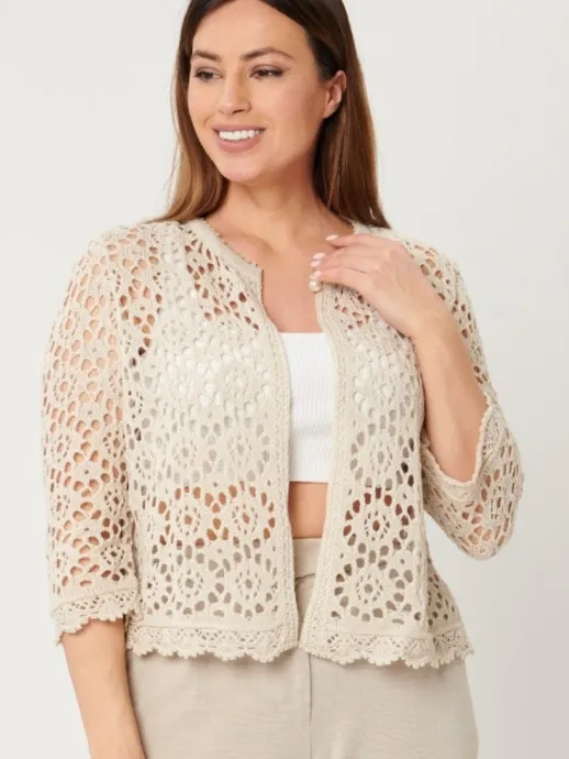 Летний кардиган с очень интересным узором - имитация вязания крючком