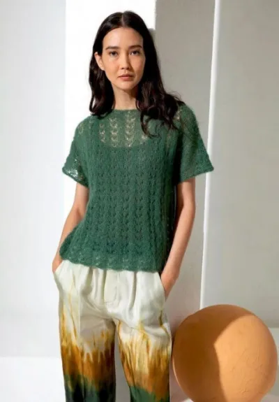 Ажурный пуловер с коротким рукавом