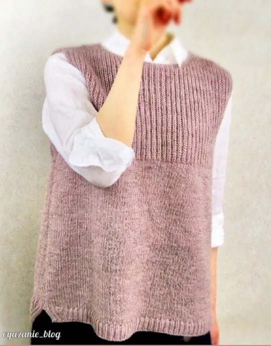 После этого детали снова соединяются для вязания безрукавки по кругу до подола, по которому выполняются боковые разрезы. То есть подол спинки и полочки вяжется раздельно. Безрукавку можно носить как водолазку, одев съемный воротник хомут.