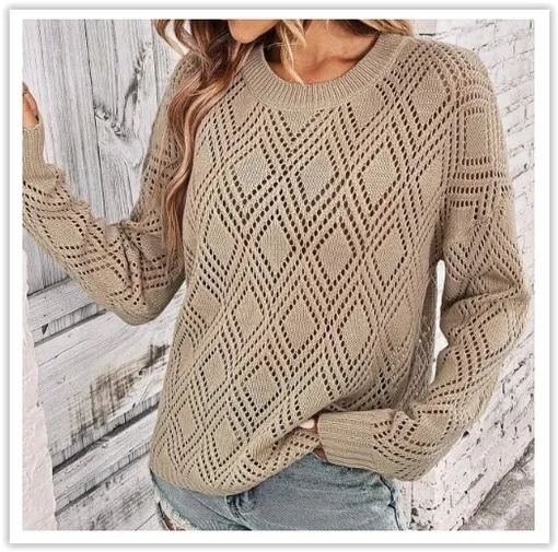 Эффектный ажур из диагональных линий и ромбов. Прямой фасон свободного кроя.