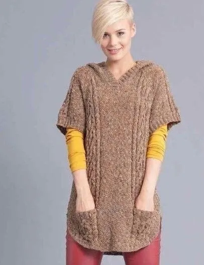 Вам потребуется: 400/450/500 г коричнево-бежевой пряжи LANG YARNS DONEGAL (100% мериносовой шерсти, 190 м/50 г); спицы № 4 и № 4,5; круговые спицы № 4; вспом. спица для кос.
