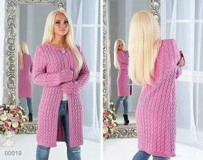 Размер 44/46 Пряжа: Пехорка "Мериносовая" цвет №700 Светлая фиалка, спицы взяла №3 Основной узор: Жгут состоит из 6 петель, в каждом восьмом ряду происходит перехлест петель жгута. Ряды с 1-го по 7 формируют узор жгута. 1-й, 3-й и 5-й ряды: * 6 лиц. п. *, повторять от * до * 2-й и все четные ряды: все петли вязать по рисунку 7-й ряд: * 6 п. перекрестить налево (3 п. оставить на вспом. спице перед работой, 3 лиц. п., затем провязать лицевыми 3 п. со вспом. спицы) *, повторять от * до * Итак расчеты из страны Мам от Tatoha: Я связала образец и у меня получилось, что в 10 см получается 3 косы в ширину и 3 косы в длину. Так как подруга у меня хотела кардиган не совсем в обтяжку, то решили, что надо вязать на окружность бедер = 110 см.
