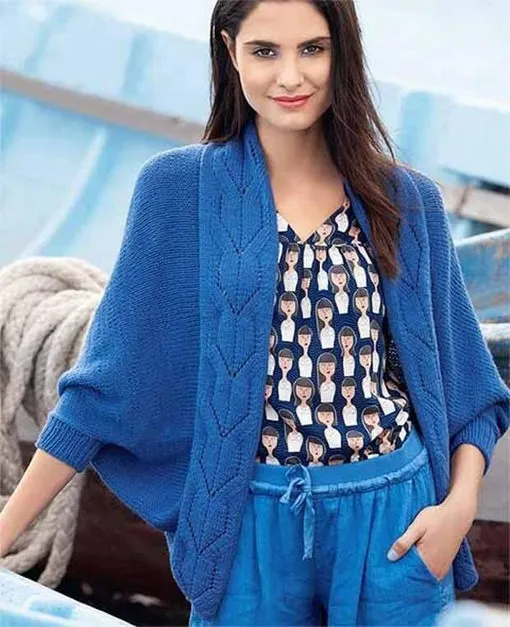 Плотность вязания свободного жакета без застежки: лицевая гладь (спицы № 3,5) – 16 петель на 24 ряда соответствует 10 на 10 см; ажурный узор (спицы № 3,5) – 22 петли на 24 ряда соответствует 10 на 10 см.