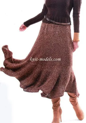 Не могу сказать точно, какая пряжа на этом фото, ноя бы предпочла вязать такую юбку из более тяжелой нити: лен+вискоза или хлопок+вискоза. Можно мерсеризованный хлопок.