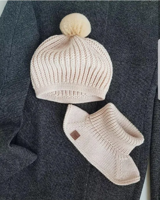 Переходим на спицы номер 5 и вяжем 60 рядов английской резинкой, после этого провязываем 4 ряда обычной резинкой 1×1, далее начинаем ряд убавок по 2 петли вместе и ряд лицевыми петлями без убавок (не забываем перейти на чулочные спицы), снова ряд убавок по 2 петли вместе, и ещё ряд убавок, в итоге на спицах у нас остаётся 10 петелек, отрезаем 15-20 см ниточки, продеваем её в толстую иголку, стягиваем макушку - всё!