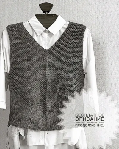 P. S. На фото фигурирует другой жилет, т. к. у меня как всегда закончилась пряжа, а найти её пока не могу. Фасон жилета тот-же, изменена горловина.