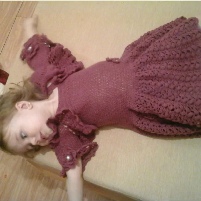 Вот такое платье вязала несколько лет назад, для дочери подруги. Платье идет с болеро.