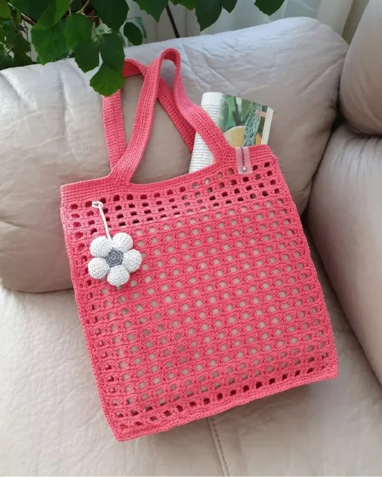 Сумки, связанные крючком, прекрасно держат форму, особенно если использовать шнур или добавить подкладку. Они лёгкие, вместительные и удобные — идеально подходят для прогулок, пляжа или похода на рынок за цветами.