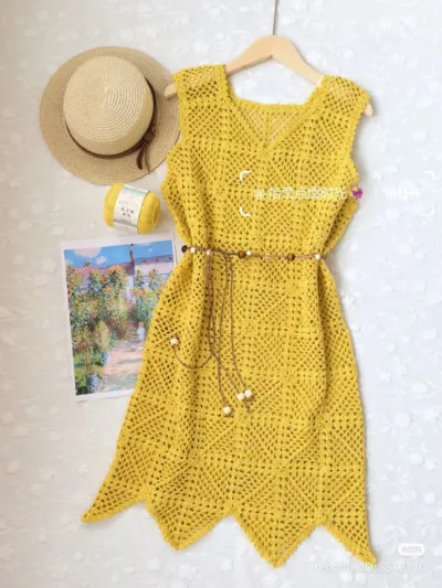 Жёлтое платье, связанное крючком из ажурных мотивов — это не просто наряд, а настоящее воплощение солнечного настроения и лёгкости! Оно выглядит воздушно, романтично и при этом очень стильно. Такой образ мгновенно привлекает внимание и подчеркивает индивидуальность.