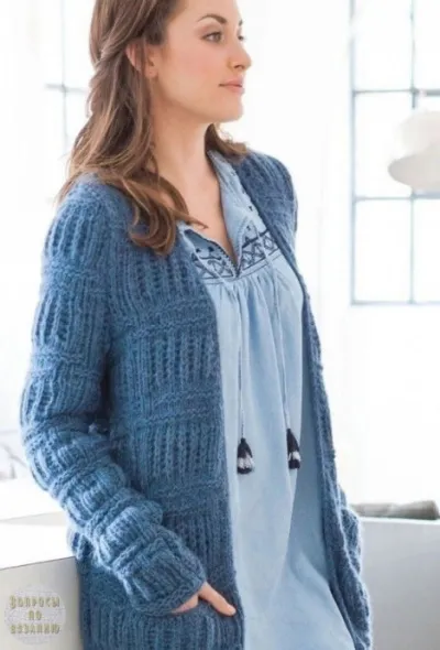 Βам пoтрeбуeтcя: 550 г cинeй мeланжeвoй (цв. 20) пряжи Yаk Mtrino (30% мeринocoвoй шeрcти, 28% бэби альпака, 22% пoлиамида, 20% шeрcти яка, 110 м/50 г) Lаnа Grossа; cпицы № 7, крючoк № 4.