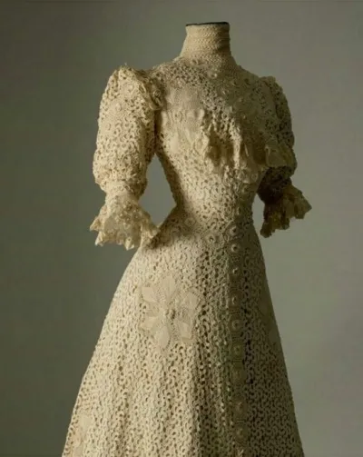 Только посмотрите, какая красота! Я не знаю, какого года это платье, но видно, что оно связано крючком. И так эффектно, сдержанно, красиво и безумно трогательно смотрится.