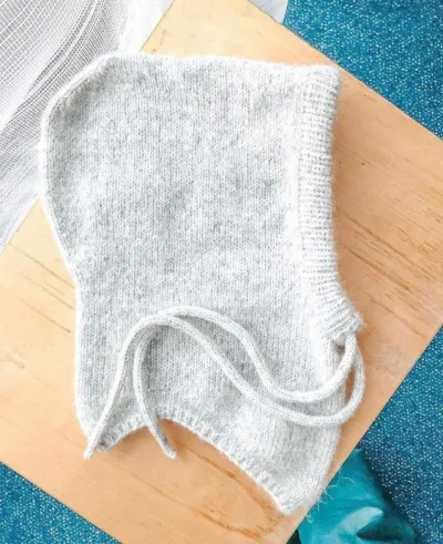 Далее разделяем вязание, сняв 6 петель для подбородка на доп нить и вяжем в высоту, убавляя еще по 1 петле с каждого края для оката -3-4 раза.