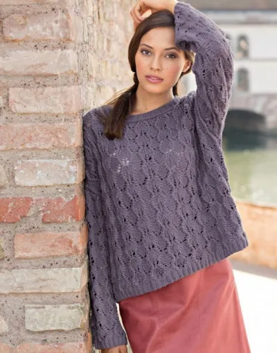 Свободный джемпер из мягкой, приятной к телу пряжи, покоряет оригинальным узором.