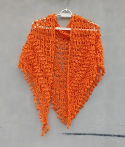 Яркая, воздушная, солнечная — такая шаль instantly добавляет образу энергию и настроение. Оранжевый в аксессуарах делает даже самый простой look живым и стильным, а ажурный крючок даёт ту самую летнюю лёгкость.