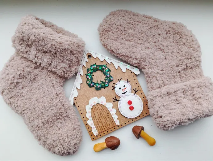 Эта пряжа — как облачко в руках: мягкая, пушистая и невероятно приятная к коже. А для детских изделий это самое главное. Когда я вязала эти носочки, мне всё время казалось, будто я создаю что-то по-настоящему сказочное — настолько тактильно она волшебная.