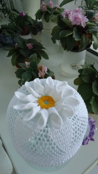 Не знаю получилось или нет добавлю фото шапочки Ромашки я связала ее немного подругому