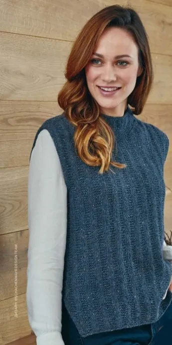 Воротник-стойка аккуратно прикрывает шею, создавая ощущение уюта и комфорта. Связанный сверху вниз жилет из мягкой смесовой пряжи графитового оттенка прекрасно комбинируется с блузкой или трикотажным лонгсливом, брюками или джинсами скинни.