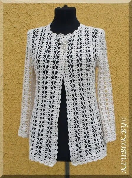 Жакет из хлопковой пряжи, связанный крючком можно носить как для праздничных случаев, так и на каждый день летом. Описание модели сделано на 46-48 размер.