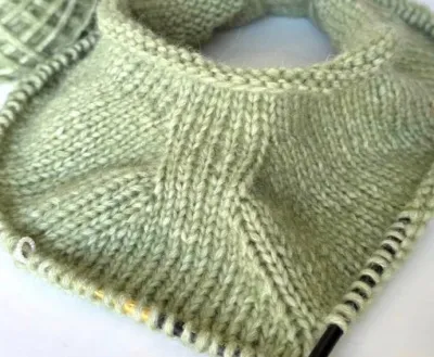 Общий принцип вывязывания реглана-погона отличается от реглана сверху.