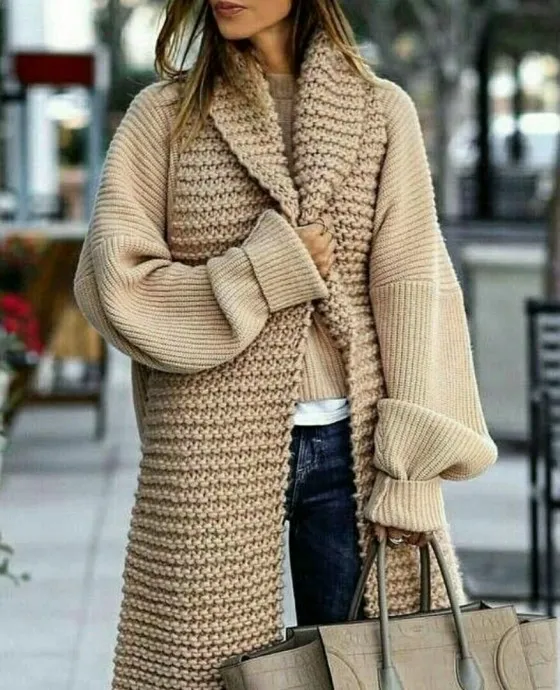 Я так понимаю, это свитер и шарф крупной вязки. А выглядит как пальто или я ошибаюсь??