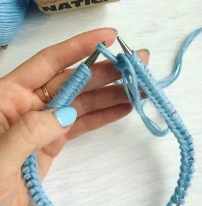 - оденьте последнюю набранную петлю снова на правую спицу и подтяните хвостики.