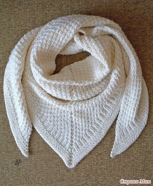 Белая шалль спицами