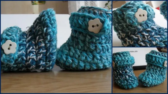 Вот такие тапки я вязала крючком для своих племяшек: старшему - чуни сине-зеленые на пуговке, а младшей - в виде кроликов со стелькой из кожзама.