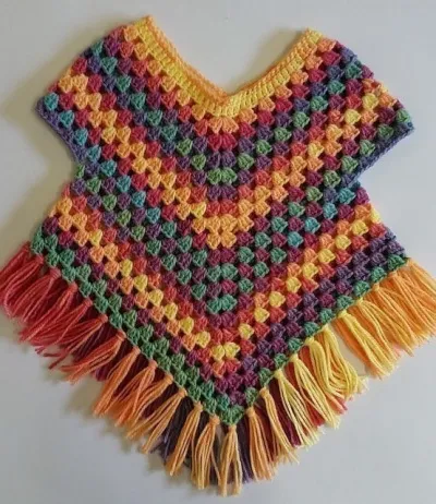 Пончо на основе «бабушкиного квадрата», связанное крючком