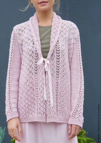 Нежный розовый жакет на завязках — это не просто вязаная вещь, а акцент, который добавляет образу мягкости, тепла и особой женственной эстетики
