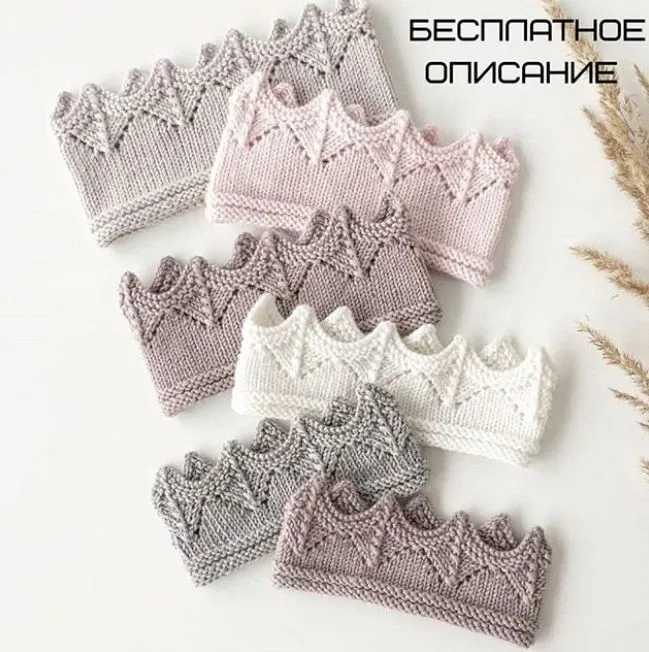 Далее вяжем несколько рядов лицевыми петлями, в зависимости от того какой высоты вы хотите корону, 2 ряда изнаночными, 2 ряда лицевыми и 2 ряда изнаночными. Все - закрываем петли, прячем кончики, стираем и готово