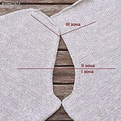 Теперь хочу обратиться к Вам и к девочкам по вопросу оката рукава. Долго ждала, что кто-то что то спросит или напишет по поводу оката и его расчета, но вижу что полная тишина, а это может быть только в двух случаях: или всем понятно все или всем ничего не понятно. Мне понятно про пройму от а до я. Понятно в окате про первую зону, вяжем как пройму, а вот расчет и ритм второй зоны и третей не поняла.