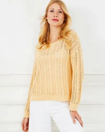 Желтый ажурный пуловер спицами