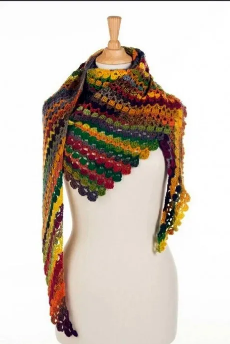 Цветной бактус, связанный крючком от угла —стильный аксессуар
