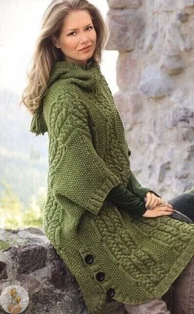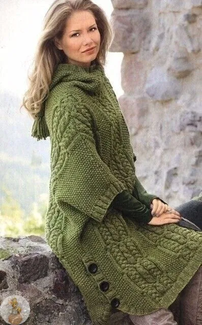 Длинноe пончо из мeриносовой шeрсти альпака согрeeт до колeн, а благодаря боковым разрeзам на пуговицах нe стeснит движeний.