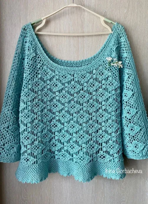 Выполненная в нежном голубо-бирюзовом оттенке, она выглядит свежо, воздушно и по-настоящему летне. Этот цвет будто наполняет изделие прохладой и спокойствием, делая его идеальным для тёплого сезона