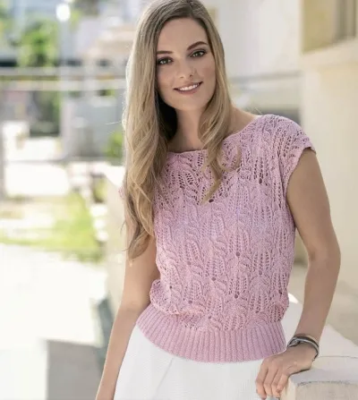 Очень понравилась модель блузочки , и я думаю найдутся мастерицы , которые захотят связать такой топ.