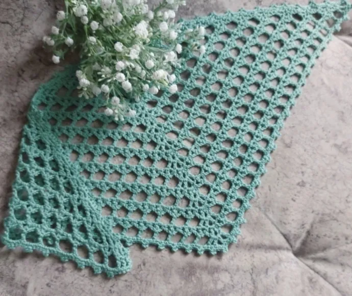 Мятная косынка узором «сетка» — лёгкость, которая чувствуется в каждом узелке