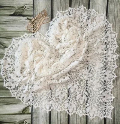 Шаль связана по схеме «Подснежники».