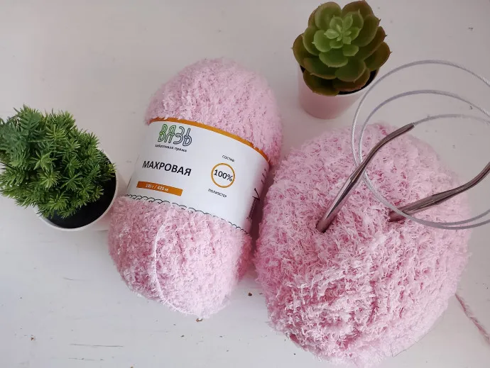 Розовый джемпер из махровой пряжи